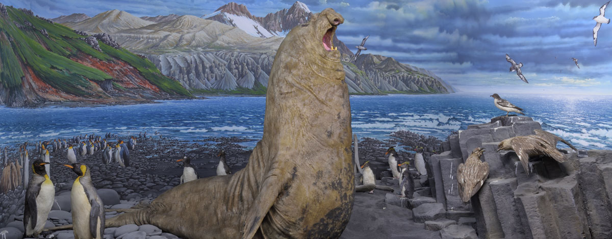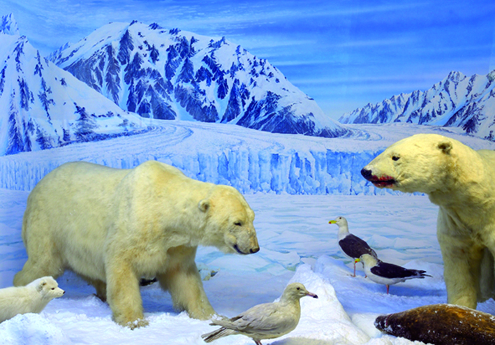 Il bue muschiato e il caribù sono i protagonisti del primo diorama, dedicato alla tundra canadese. Si prosegue con il narvalo e il tricheco, abitanti del mare artico, l’orso polare della Groenlandia e i numerosi uccelli che popolano le falesie delle isole norvegesi Lofoten. Il quinto e ultimo diorama mostra invece l’elefante marino e i pinguini che popolano l’arcipelago subantartico delle Kerguelen.