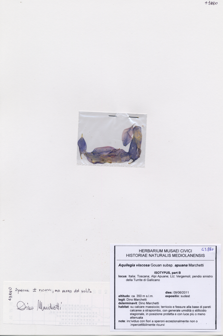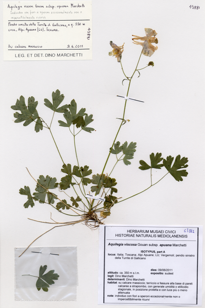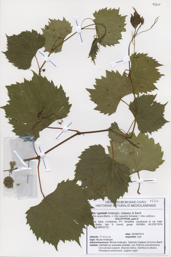 Contenuto: piante vascolari spontanee e coltivate, oltre a piccole raccolte di alghe, funghi, licheni e briofite. Sono conservati i tipi nomenclaturali di 8 specie di angiosperme (Aquilegia viscosa Gouan subsp. apuana Marchetti, isotipo; Oenothera stucchii Soldano, isotipo; Primula albenensis Banfi & Ferlinghetti, olotipo; Vitis ×bacoi Ardenghi, Galasso & Banfi, olotipo; Vitis ×goliath Ardenghi, Galasso & Banfi, olotipo; Vitis ×instabilis Ardenghi, Galasso, Banfi & Lastrucci, olotipo; Vitis ×koberi Ardenghi, Galasso, Banfi & Lastrucci, olotipo; Vitis ×ruggerii Ardenghi, Galasso, Banfi & Lastrucci, olotipo) e 1 varietà di alga (Distephanus speculum (Ehrenb.) Heckel var. monospicatus Malinverno, olotipo + isotipo).