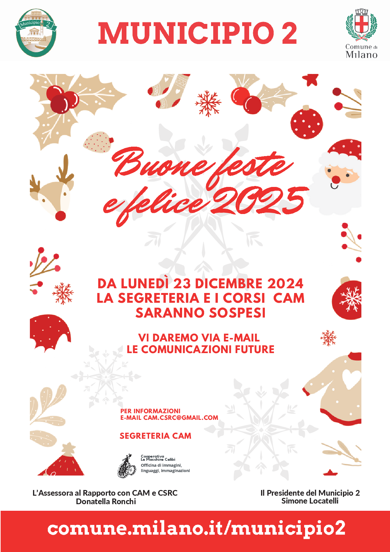 Si avvisa che dal 23 dicembre 2024 saranno sospesi i corsi CAM e le attività di segreteria...ma prima: