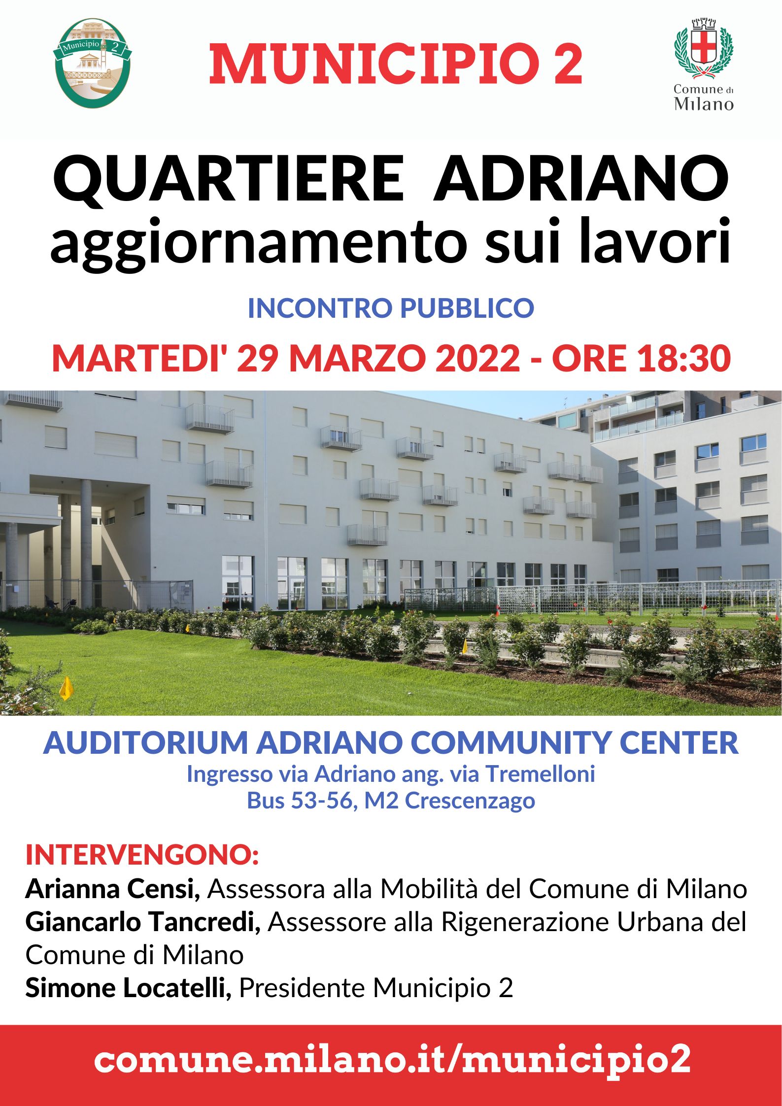Milano, 25 marzo 2022 - Il Municipio 2 incontra i cittadini per aggiornamenti sui lavori nel quartiere Adriano, martedì 29 marzo 2022 alle ore 18:30.