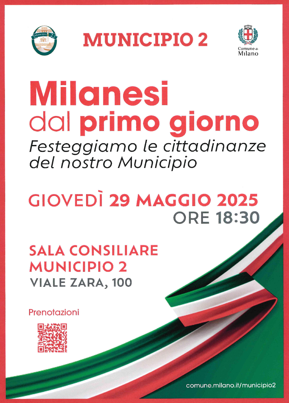 In Municipio 2, la cerimonia si svolgerà giovedì 29 maggio 2025 alle 18:30, presso la Sala Consiliare di viale Zara 100.
