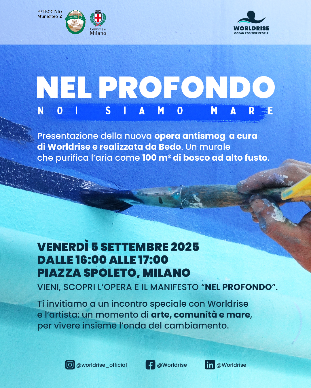 L'evento si svolgerà in piazza Spoleto, di fronte al murales realizzato dall'artista Bedo nell'ambito del progetto di Worldrise, e consiste nella presentazione e racconto dell'opera d'arte pubblica, con lo scopo di portare la voce del mare attraverso i muri del quartiere NoLo, comprenderne il significato e sentirsi parte del messaggio che essa porta con sè, valorizzando lo spazio urbano.