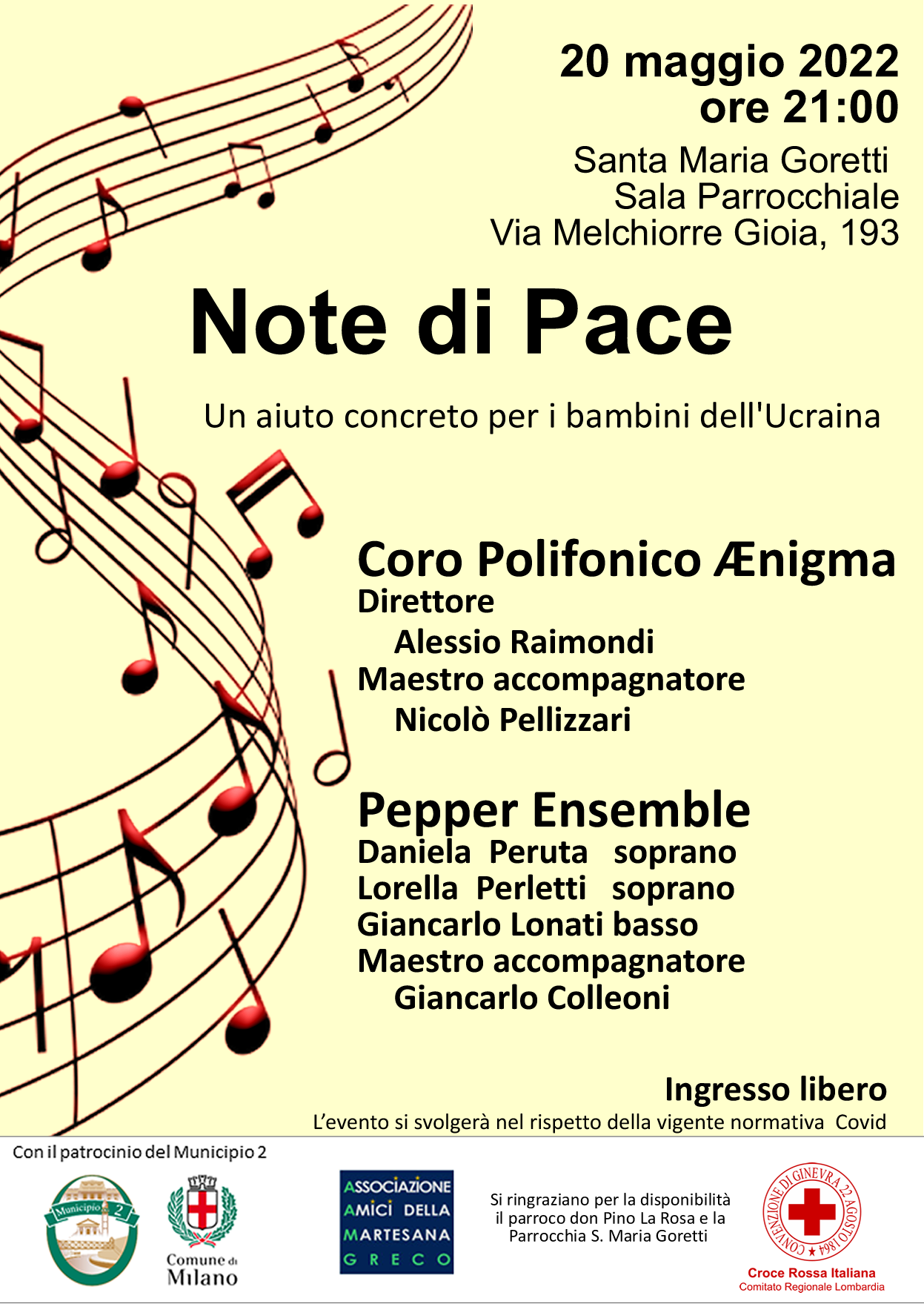 Una serata musicale per raccogliere fondi a favore del Comitato regionale Lombardia della Croce Rossa Italiana, impegnato nel dare assistenza alle popolazioni vittime della guerra in Ucraina.