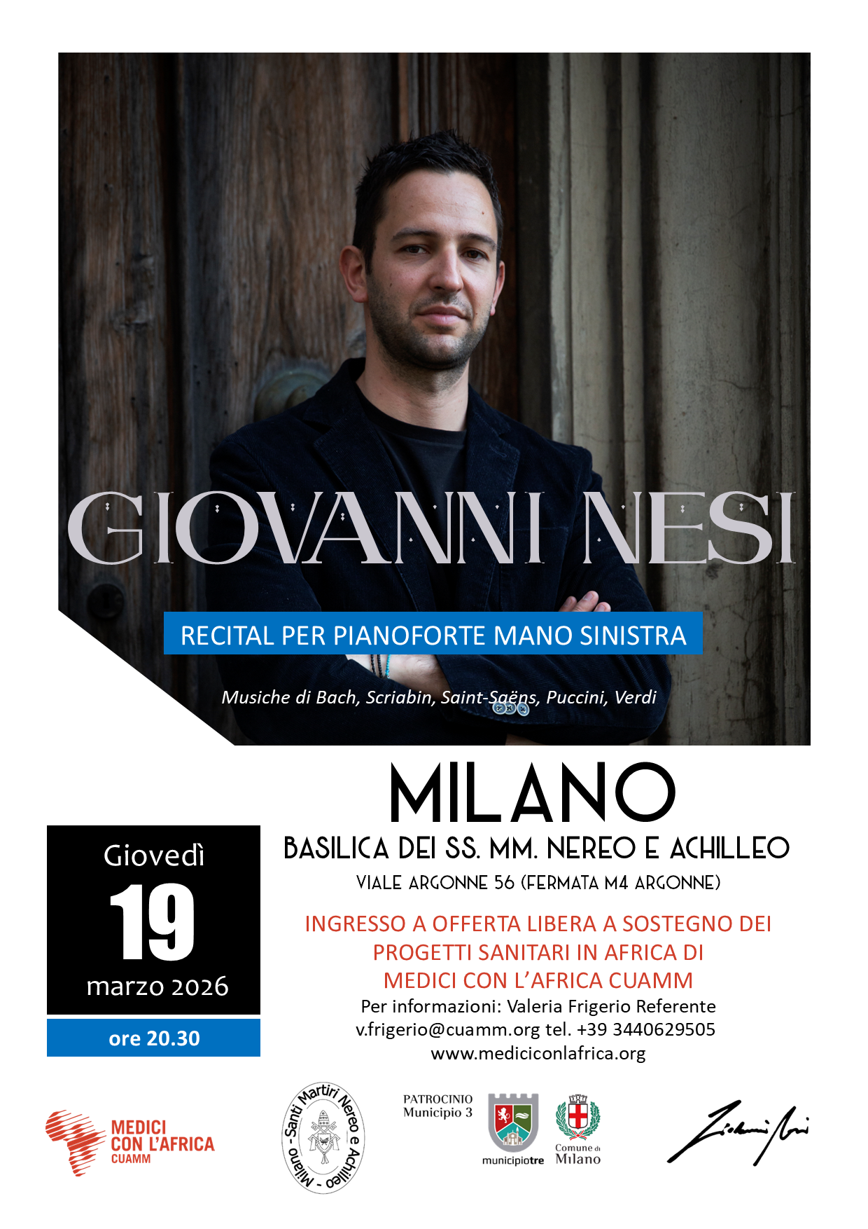 Recital per pianoforte per la mano sinistra di Giovanni Nesi, concertista di fama internazionale e Capo del Dipartimento di Pianoforte del Conservatorio “Pietro Mascagni” di Livorno, a sostegno di Medici con l’Africa Cuamm.